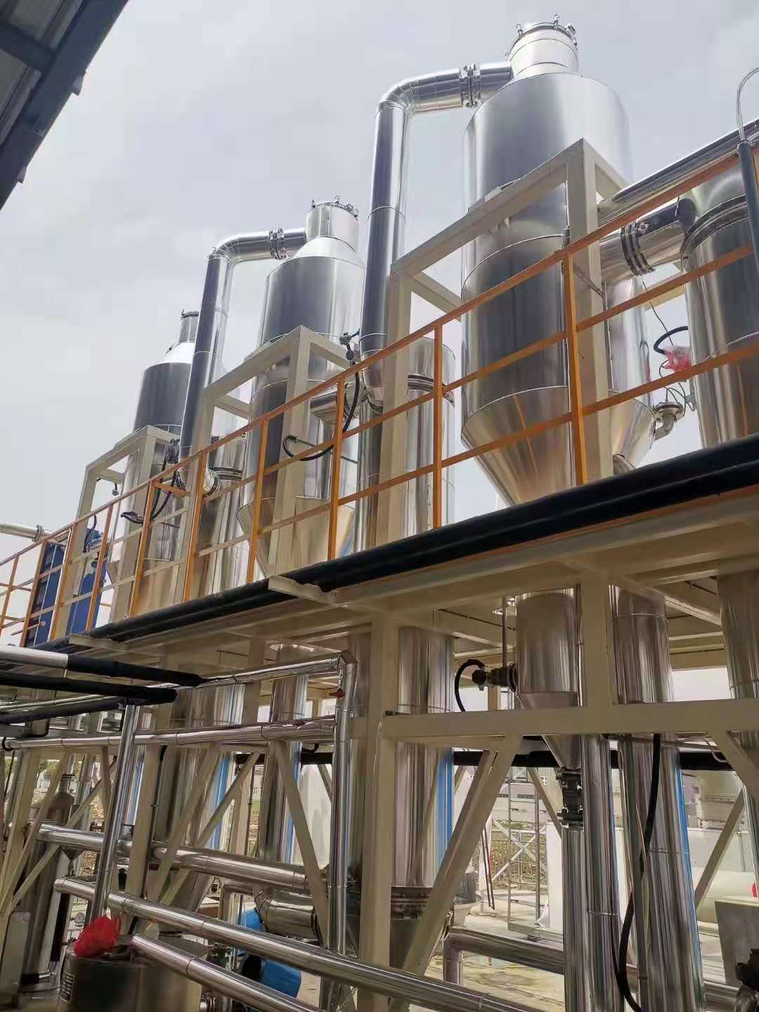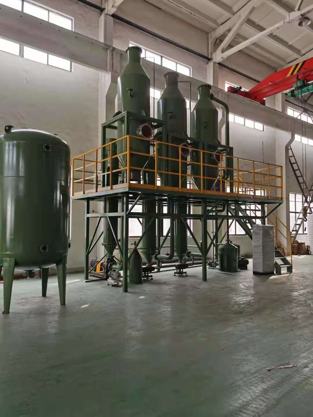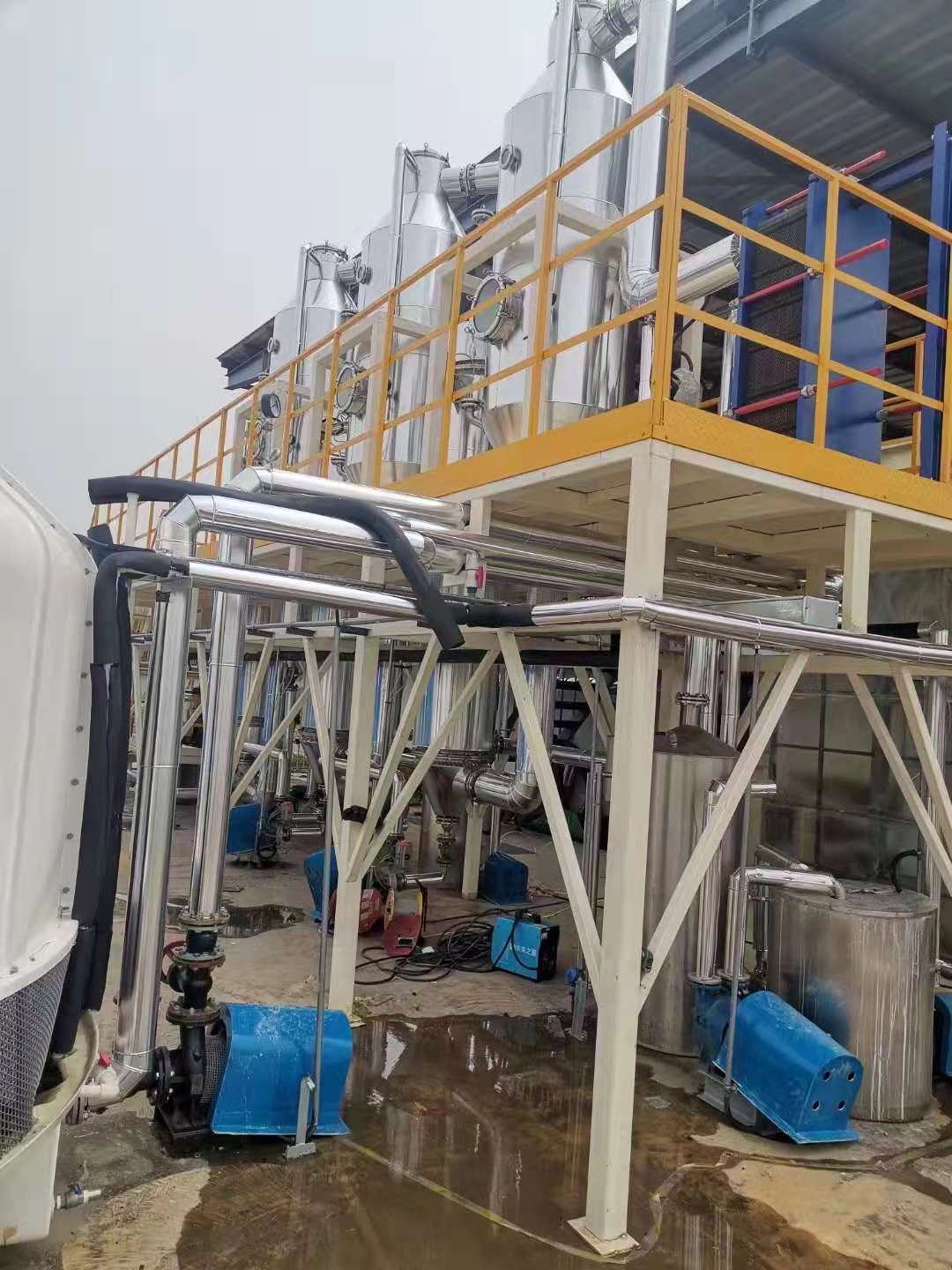 三效蒸發(fā)器概述:外加熱式強(qiáng)制循環(huán)蒸發(fā)器,是由加熱室和蒸發(fā)室組成,靠循環(huán)管、循環(huán)泵連接成一個(gè)整體,它適合于有結(jié)晶顆?;蚍哿5娜芤赫舭l(fā)濃縮。結(jié)構(gòu)簡(jiǎn)單,容易操作,不足的是循環(huán)泵、電耗相對(duì)較高。目前,國(guó)內(nèi)普遍. . .